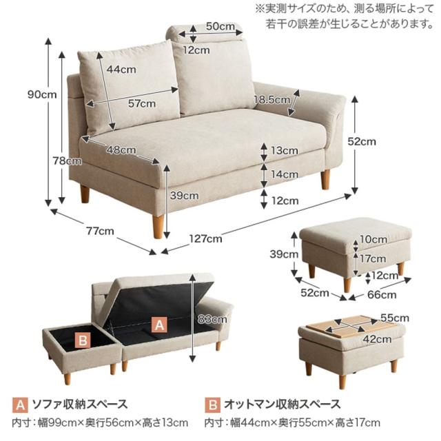 ■本体サイズソファ:幅127cm×奥行77cm×高さ90cm×座面高39cm
