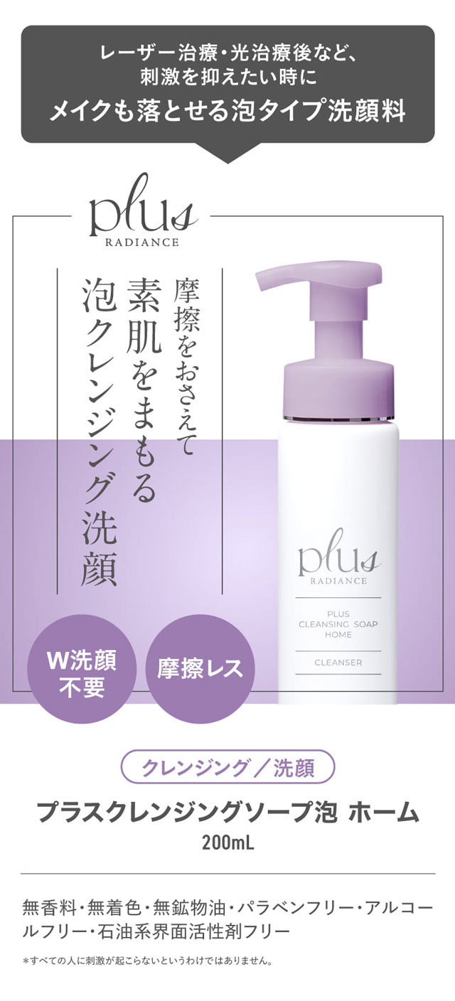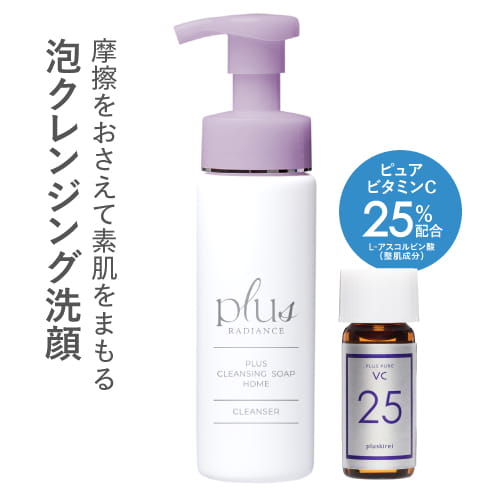 | 商品名 / 内容量 | プラスクレンジングソープ泡 ホーム:200mL プラスピュアVC25:2mL ●配合成分につきましては、上記の商品名をクリックしてご確認ください |