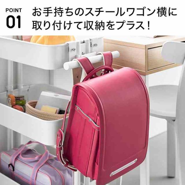 山崎実業 スチールワゴン横ランドセル&リュックハンガー タワー 公式 tower 10771 10772 ホワイト ブラック ランドセル収納 ランドセルラック ワゴン横 ランドセルハンガー 収納 穴あけ不要 省スペース リュック バッグ 引っ掛け収納 浮かせる収納 コンパクト かばん掛け