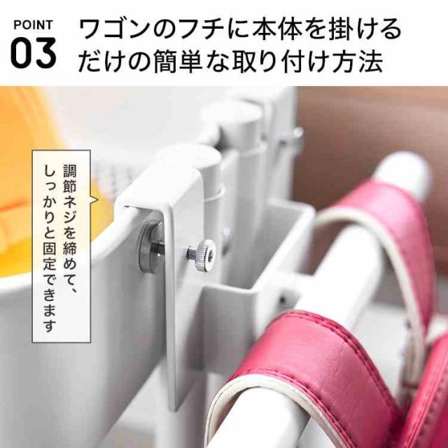 調節ネジでしっかり固定できる、ワゴン横にランドセルやリュックを掛けられるハンガーです。