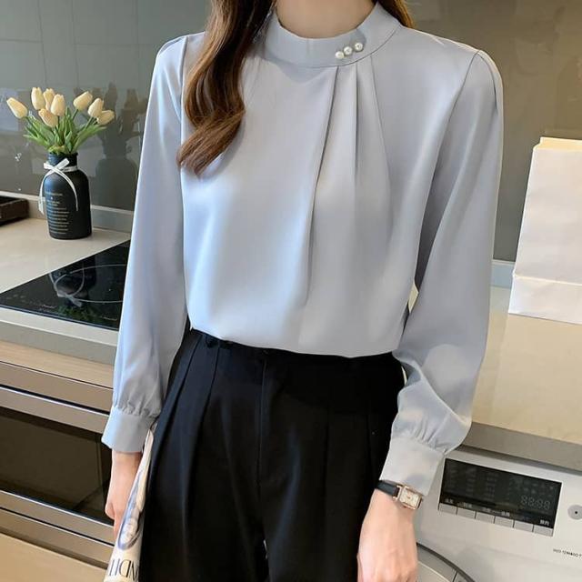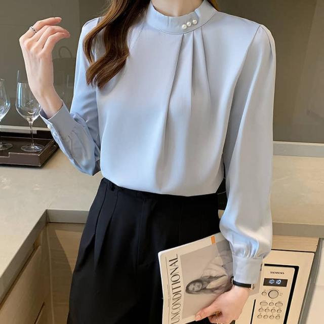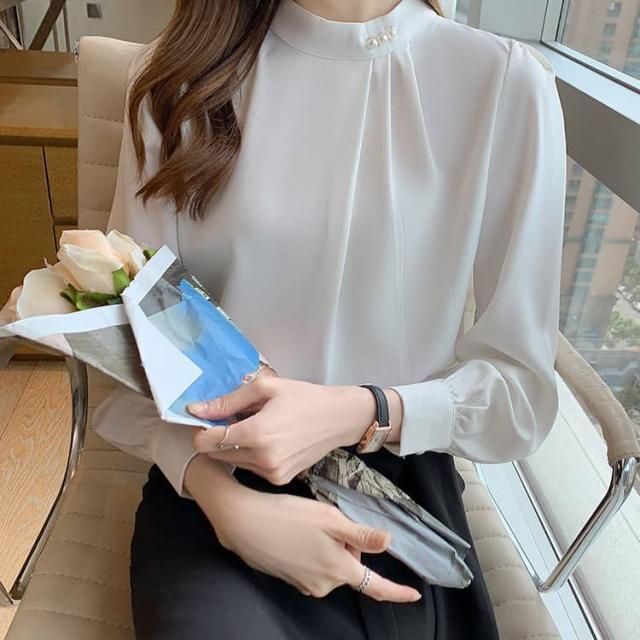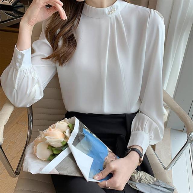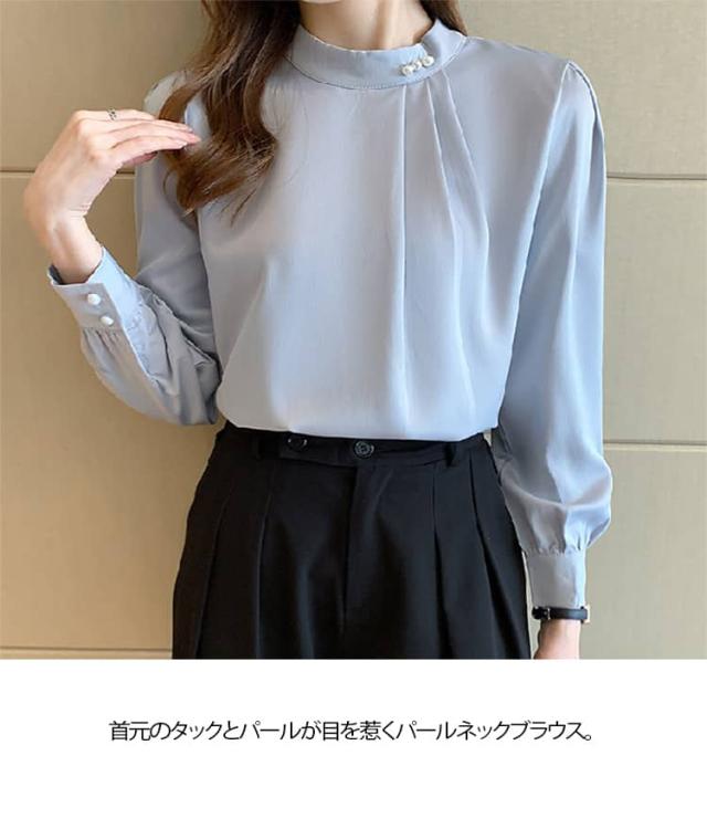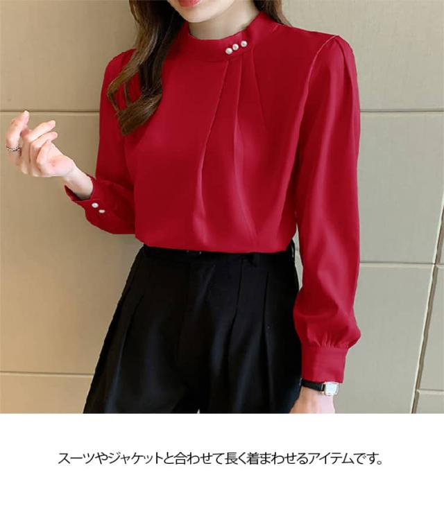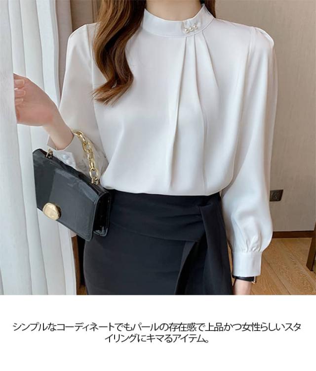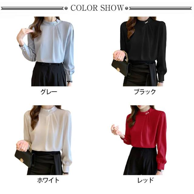 パール付き ブラウス レディース 長袖シャツ フォーマル トップス 春秋 セレモニー スーツ インナー シフォン ブラウス オフィス カジュアル 喪服 入学式 入園 卒業 卒園 七五三