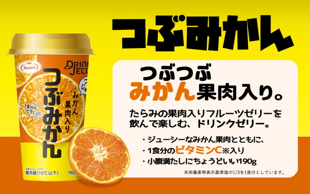 つぶつぶみかん果肉入り、ワンハンドで手軽にフルーツを楽しむ、ドリンクゼリー