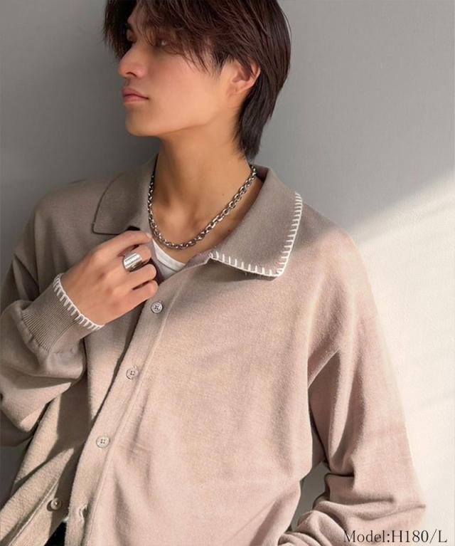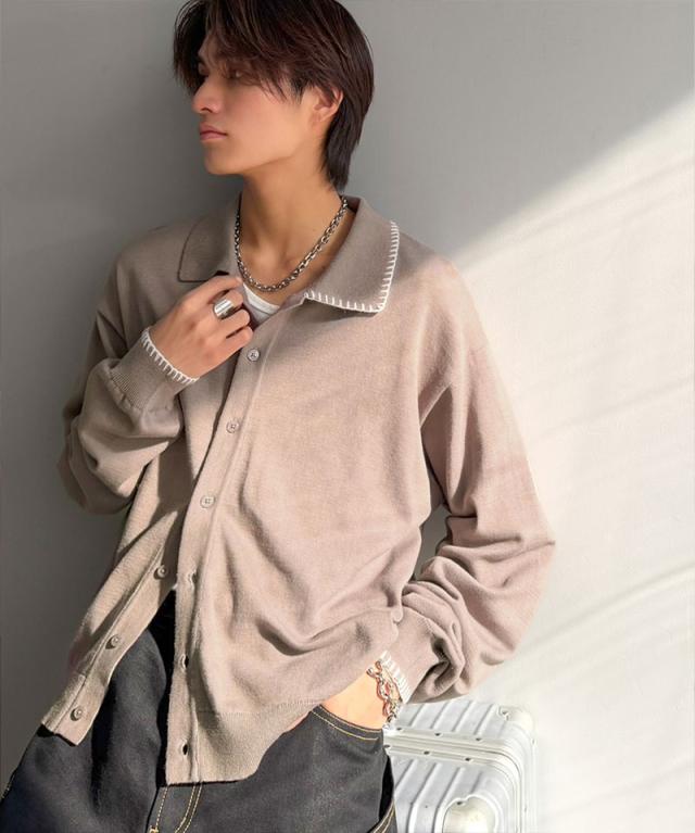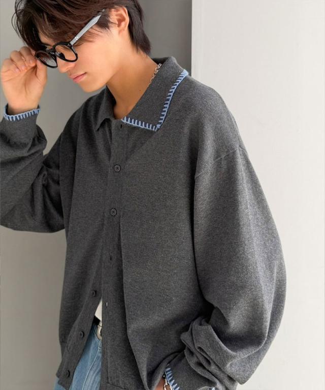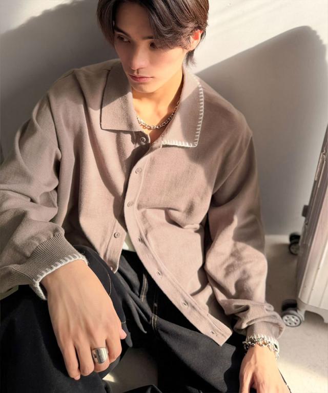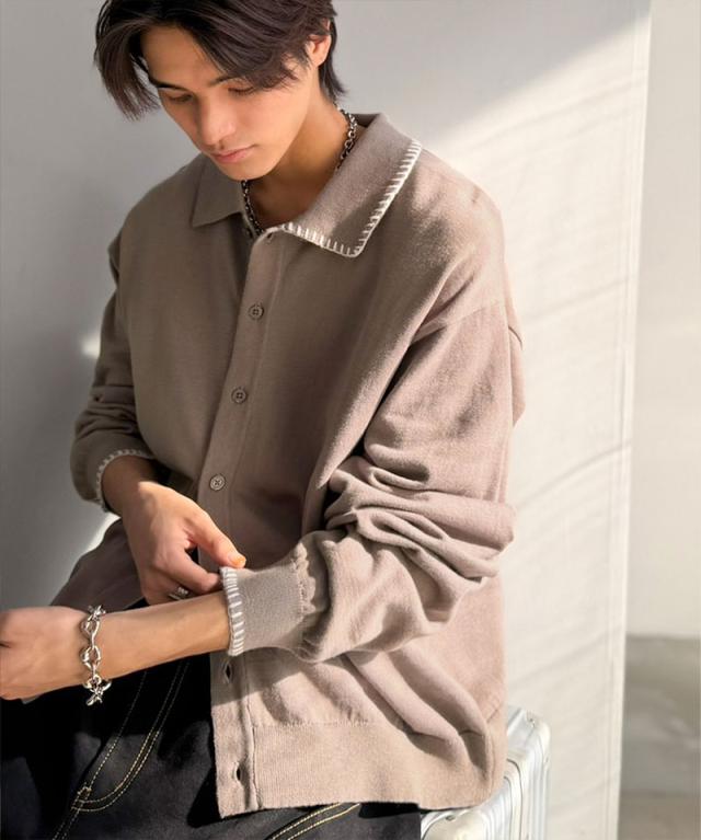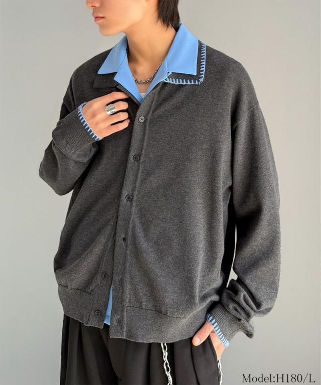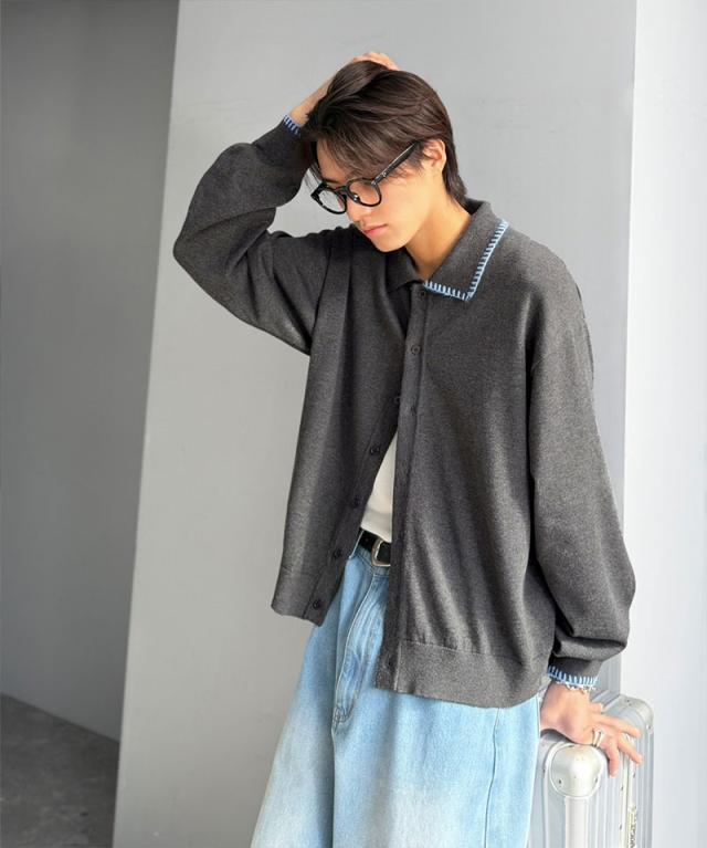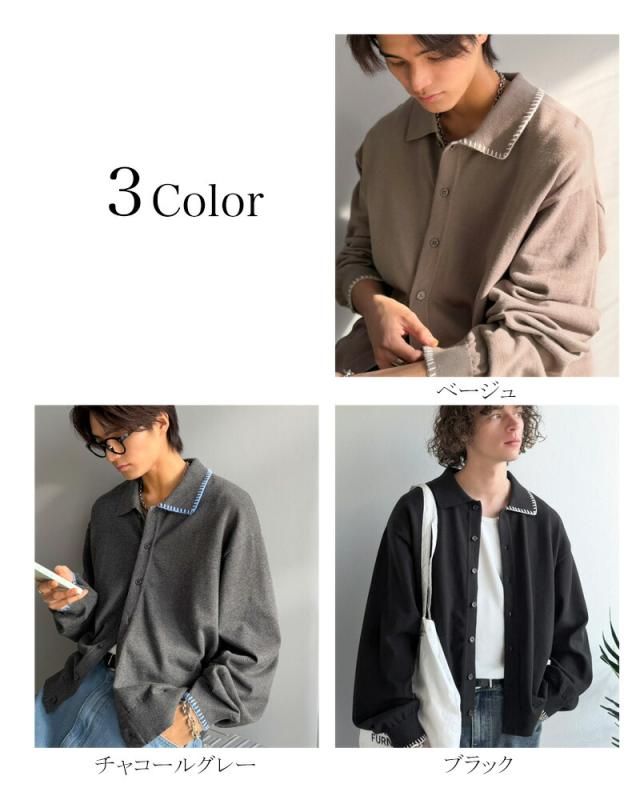 クラシカルエルフ春新作 java ジャバコラボ ニットシャツ メンズ 長袖 トップス シャツ カーディガン ステッチ 配色 ショート丈 ニットシャツ 羽織り レイヤードコーデ 大きいサイズ 黒 2026ss jo1150087