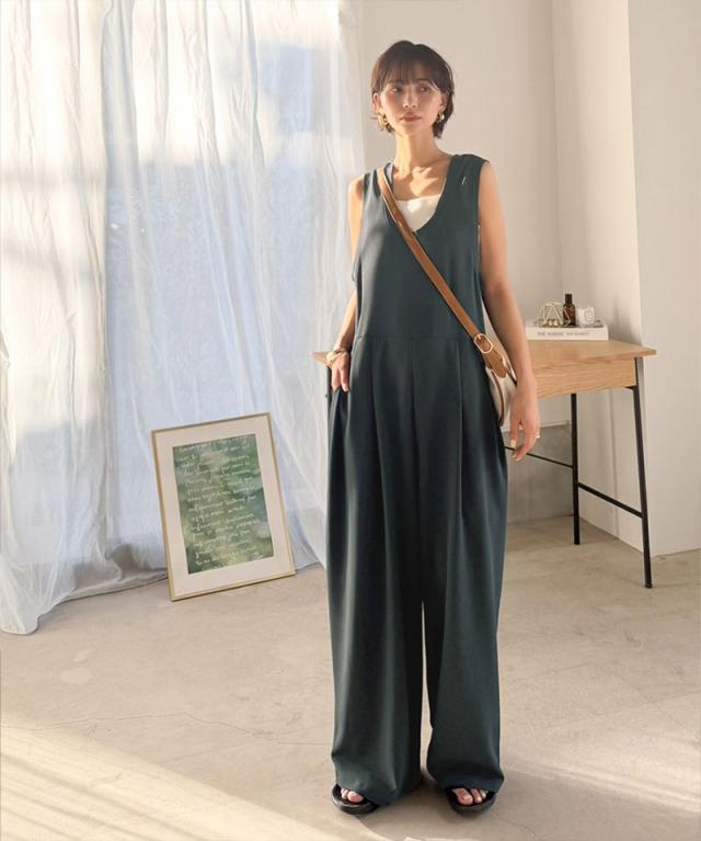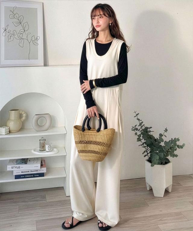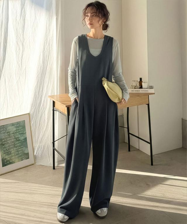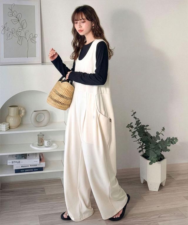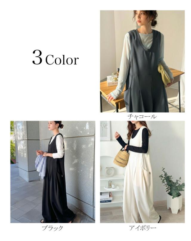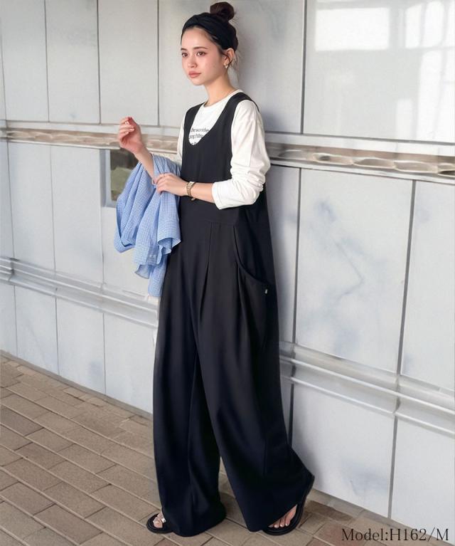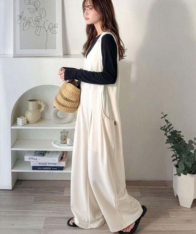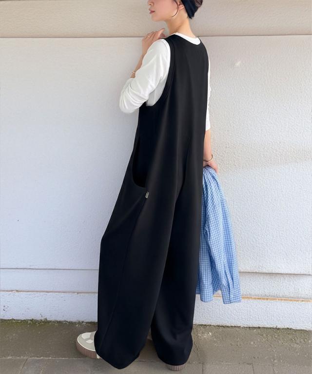 クラシカルエルフ春新作 java ジャバコラボ オールインワン サロペット レディース カットジョーゼット Uネック ゆるっと オーバーサイズ レイヤードコーデ 大きいサイズ 黒 白 2026ss jv1070223