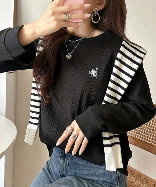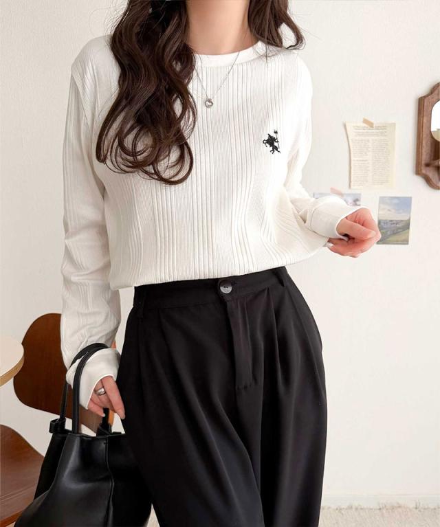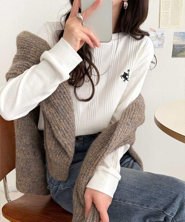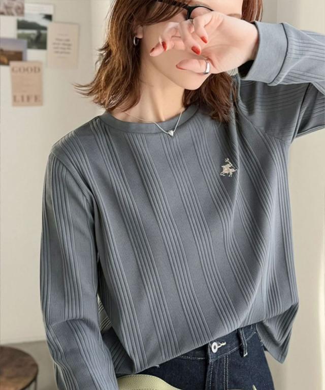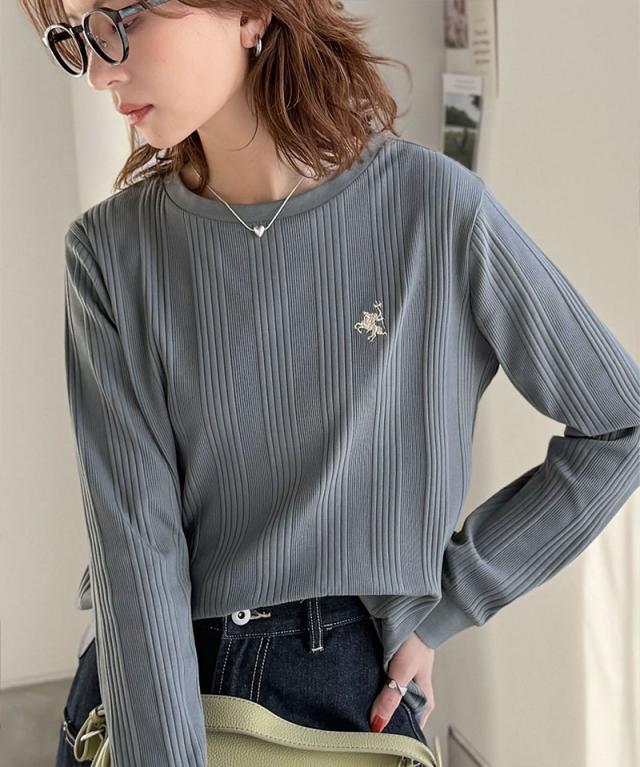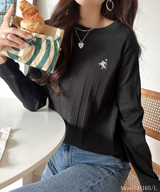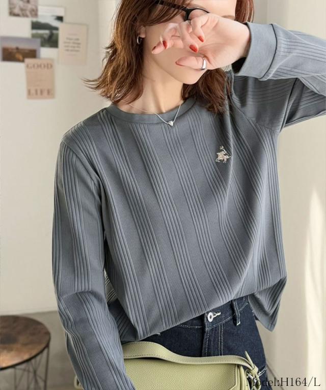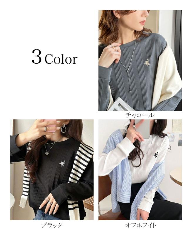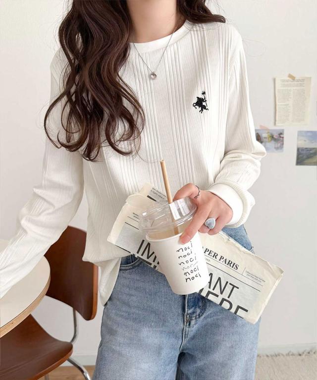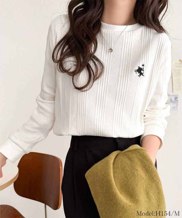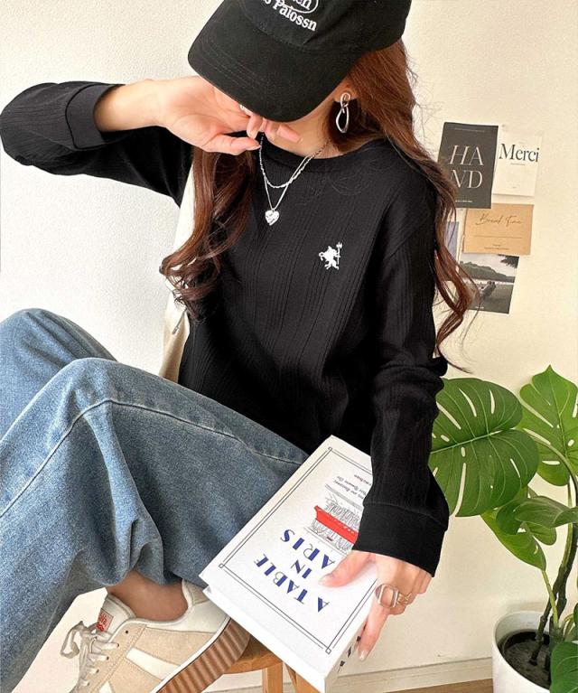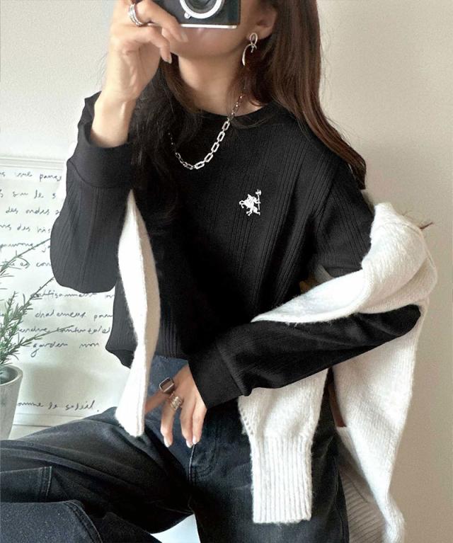 クラシカルエルフ春新作 ロンt レディース ロゴ トップス Tシャツ オーガニック ランダム テレコ 胸元 刺繍 長袖 大きいサイズ 黒 白 2026ss ce1260539