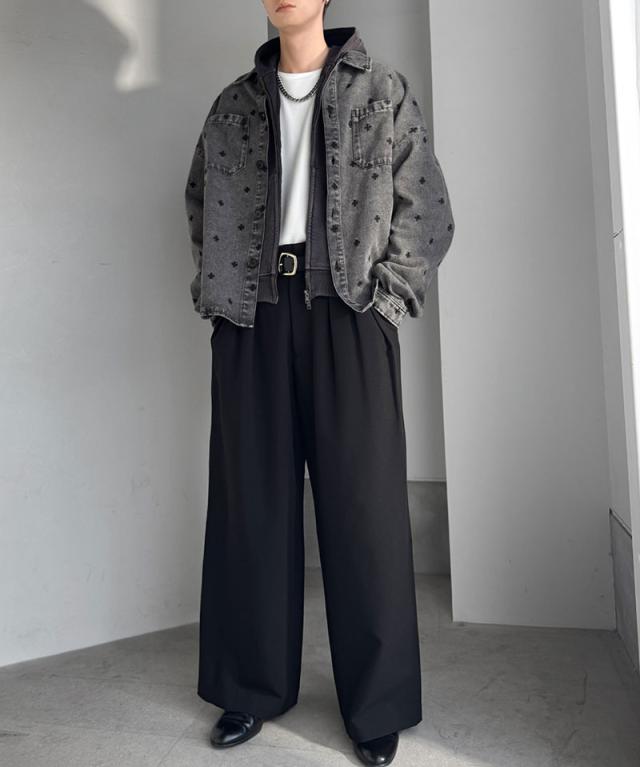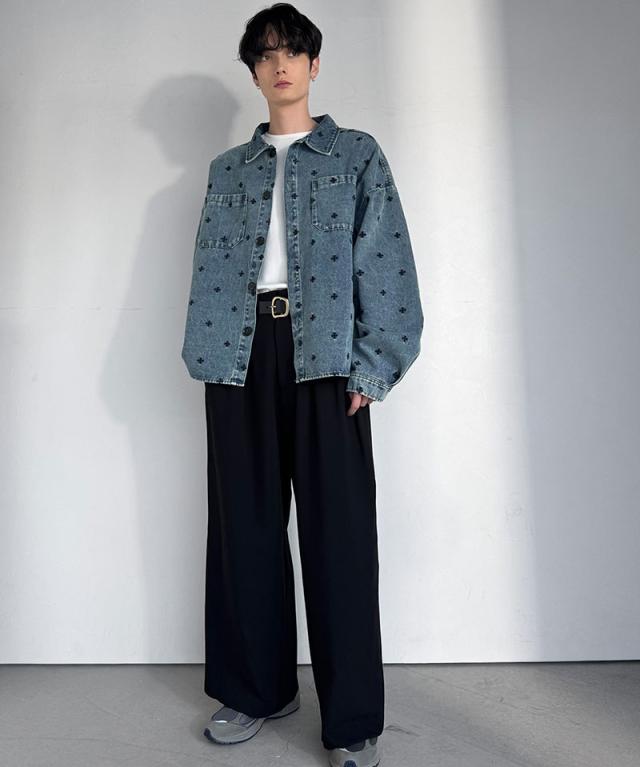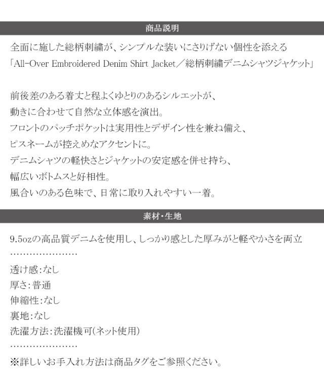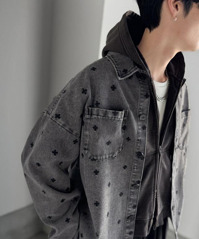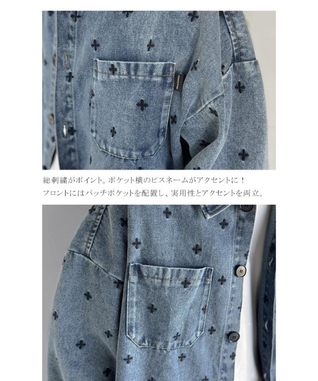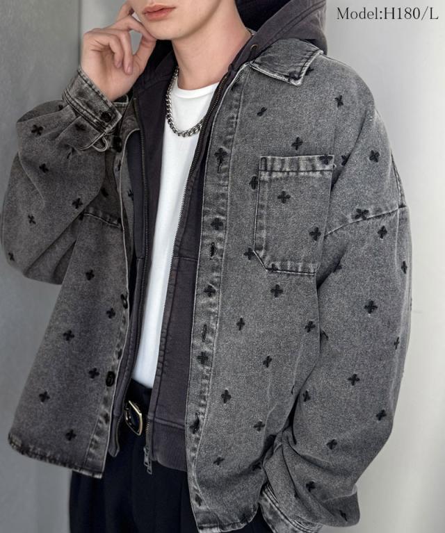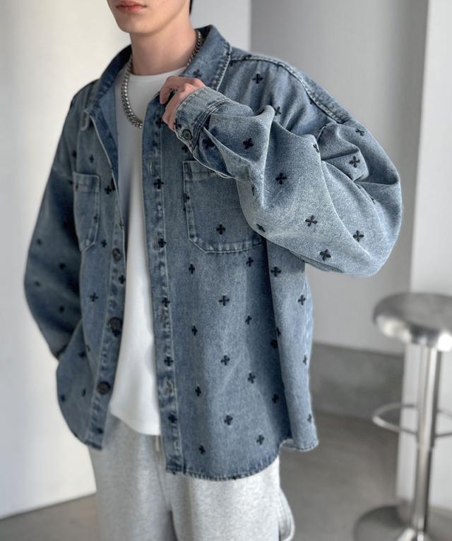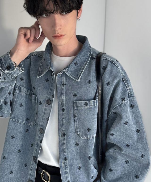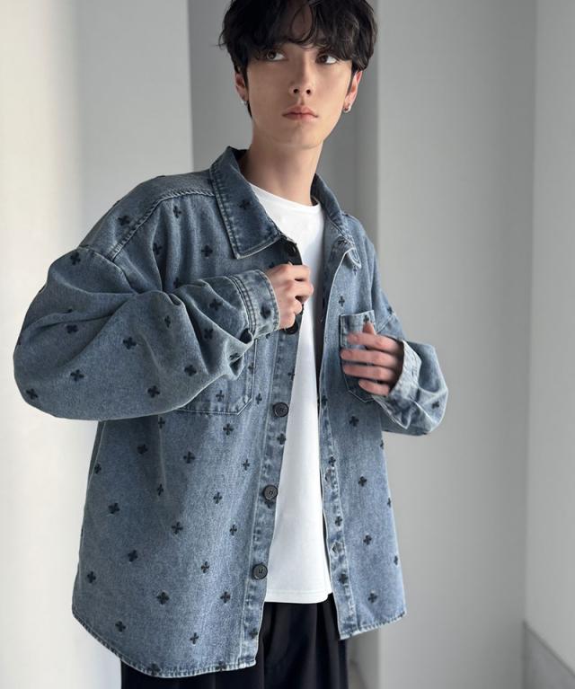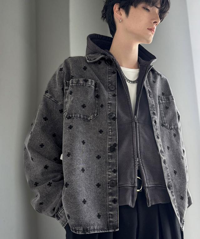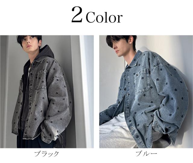 クラシカルエルフ春新作 Classical Origin シャツジャケット メンズ ゆったり アウター ジャケット メンズ 総柄刺繍 デニムジャケット シンプル 存在感 軽やか 日常 シャツ感覚 羽織り デニム素材 パッチポケット 大きいサイズ 黒 2026ss co1010050