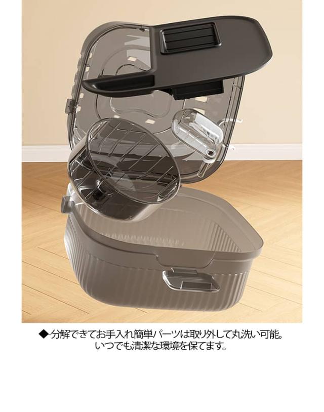 | ハムスターケージ 給水器・回し車付き ◆ 軽量&コンパクト設計 持ち運びしやすい軽量設計で、省スペースでも設置可能。初めての飼育にもおすすめです。 ◆ ハンドル付きで移動ラクラク 上部にハンドル付きで、お掃除やケージ移動も簡単。扱いやすさに配慮した設計です。 ◆ 給水器・回し車付きセット 給水器と回し車が付属しているので、購入後すぐに飼育スタート可能。 運動不足の解消にも役立ちます。 ◆ 通気性抜群で快適 通気性に優れた構造でムレにくく、ハムスターが快適に過ごせる環境をサポート。 ◆ 上部クリア・下部マット構造 上部は透明素材で中の様子がよく見え、観察しやすいデザイン。 下部は安定感のあるマット構造で、ハムスターが安心して過ごせます。 ◆ 分解できてお手入れ簡単 パーツは取り外して丸洗い可能。いつでも清潔な環境を保てます。 | |