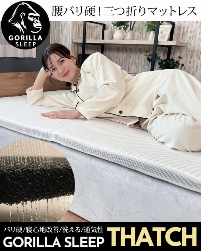 マットレス 高反発 GORILLA SLEEP 三つ折り マットレス THATCH (サッチ) シングル 超硬質 バリ硬 腰が沈まない ウルトラハード 敷布団 硬め 敷き布団 洗える 通気性 腰痛対策 体圧分散 トッパー クリーパーファイバー ゴリラスリープ 軽量 薄い