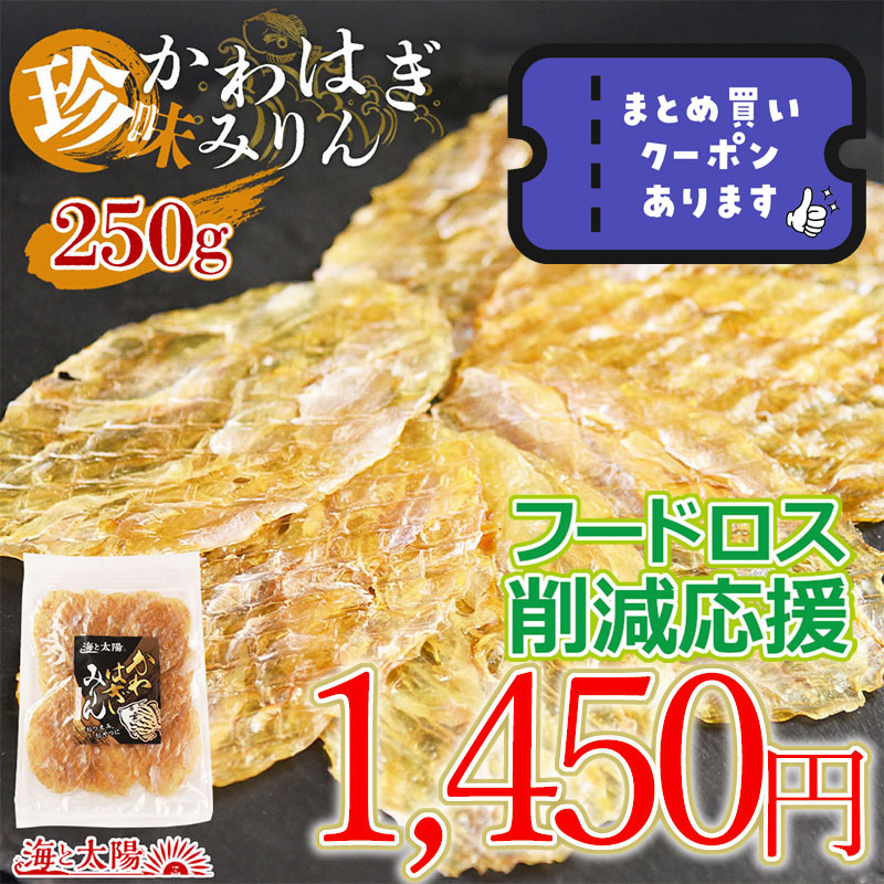 【数量限定おためし!】※賞味期限4/2のため 530円OFF ⇒ \1,450円/<珍味かわはぎみりん 250g> 要加熱 国内仕上げ カワハギ みりん干し 干物 乾物 魚介 海鮮 珍味 海と太陽 メール便 おつまみ おやつ ポイント消化 クーポン消化 賞味間近 訳あり 訳アリ