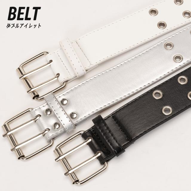 ベルト レディース メンズ バックル 太 おしゃれ 穴 いっぱい 多い 二つ穴ベルト ダブルアイレット カジュアル きれいめ かわいい 可愛い ワンピース用 ジーンズ デニム シンプル 細見え 高見え ハイウエスト ワンピ ウエストマーク ブラック 黒 シルバー ホワイト 白