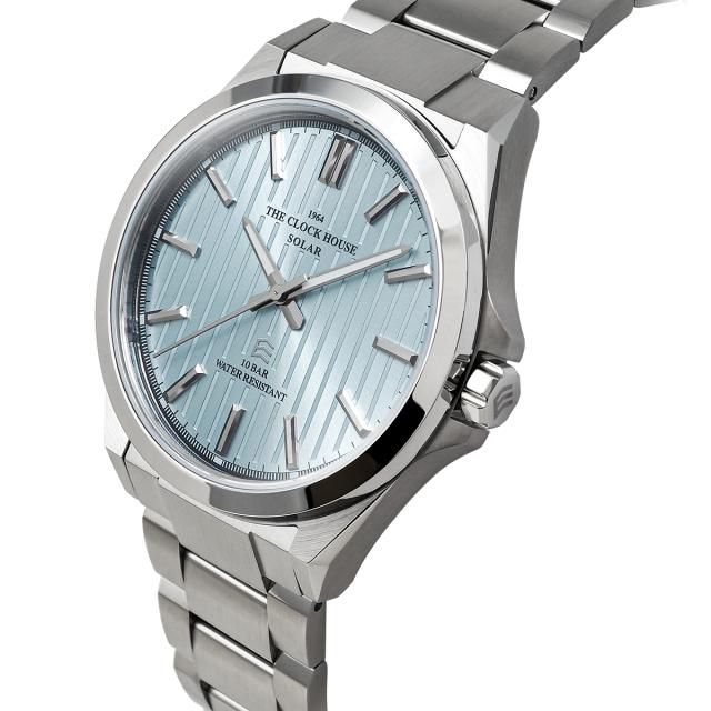 2月13日発売 ザ・クロックハウス エッジ ソーラー 3針 ストライプ アイスブルー MBC1009-BL1A メンズ 腕時計 ビジネス カジュアル
