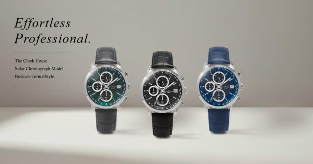 ザ・クロックハウス オリジナルウオッチから、クラシカルな造形美と現代的な快適性を融合させた新定番ソーラークロノグラフ「エフォートレス プロフェッショナル」が登場。多忙なビジネスシーンにおいて、確かな機能と品格ある佇まいを無理なく身にまとうために開発された、ビジネスフォーマルウォッチです。