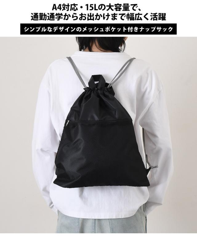 新作 ナップサック メンズ レディース 大きめ 大容量 軽い ナップザック a4 15L スポーツ アウトドア 通勤 通学 シンプル 巾着バッグ