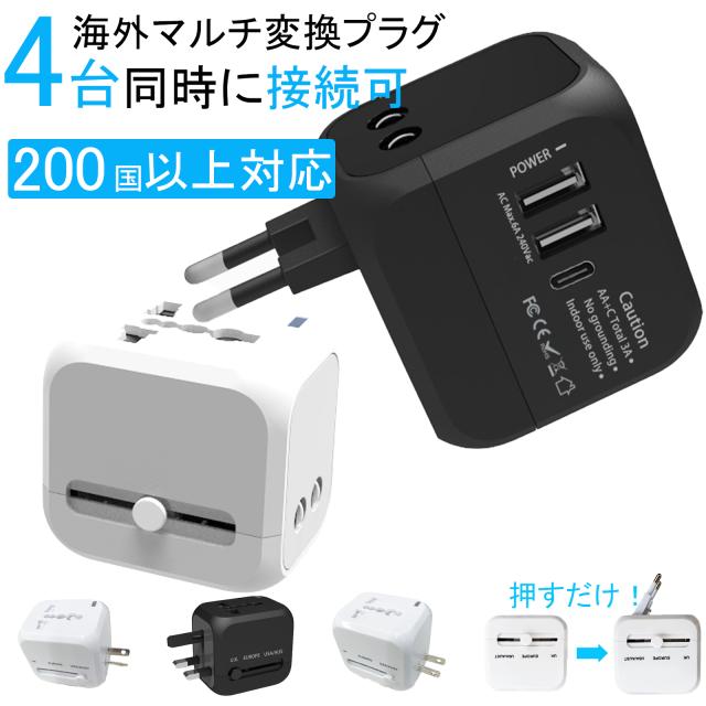 海外変換プラグ 4台同時充電 USBポート2 Type-Cポート1 搭載 200ヶ国以上対応 マルチ変換アダプタ A/C/BF/Oタイプ対応 iPhone アンドロイド 急速充電 充電器 2.4A ヨーロッパ 韓国 マレーシア オーストラリア対応 旅行用 日本国内使用不可