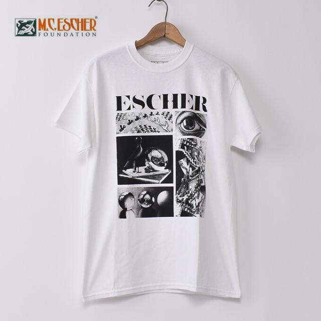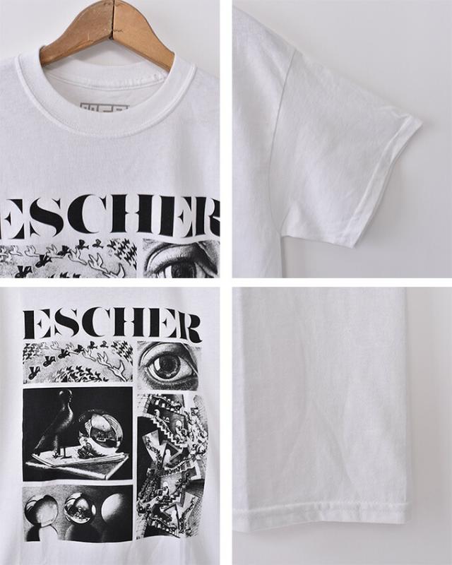 MC Escher (Maurits Cornelis Escher) / COLLAGE PRINT T-SHIRTS / WHITE MC エッシャー (マウリッツ・コルネリス・エッシャー) / プリントTシャツ / ホワイト [ネコポス対応]