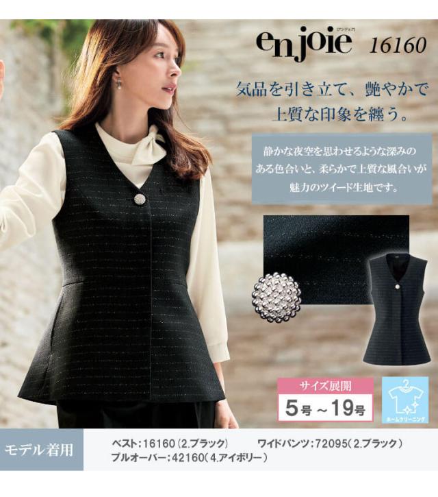 事務服 制服 接客 受付 ユニフォーム en joie アンジョア ツイード ベスト 16160 5号〜15号 2026年春夏新作 ノクターンシリーズ