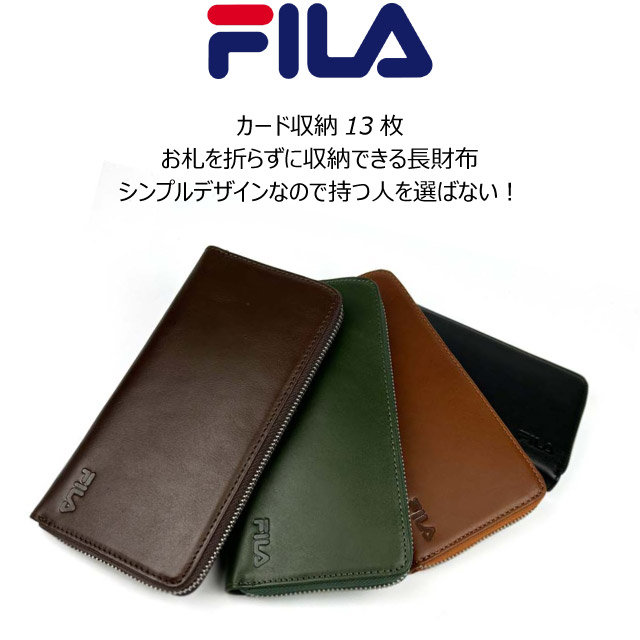 ラウンドファスナー 長財布 使いやすい FILA フィラ ベジタブルレザー ラウンドファスナー長財布 sfl601 メンズ 財布 長財布 革 レザー かっこいい 高校生 中学生 長さいふ ウォレット ロングウォレット 人気 緑 緑の財布 大容量 カード入れ メンズ財布 プレゼント 黒 茶