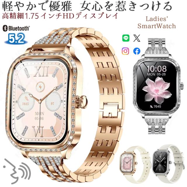 スマートウォッチ 通話機能 日本製センサー レディース 腕時計 フル画面 心拍計 歩数計 着信通知 運動モード 健康管理 睡眠検測 Phone Android対応 Line対応 日本語対応 おしゃれ 送料無料 長待機