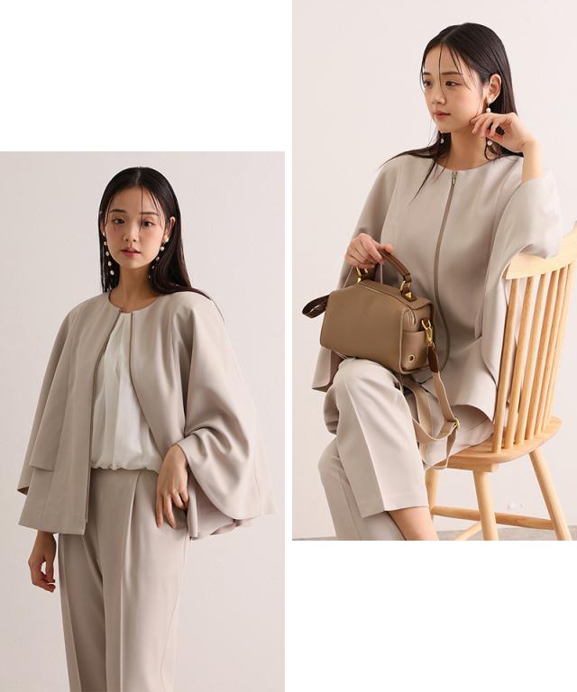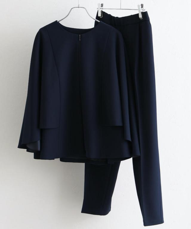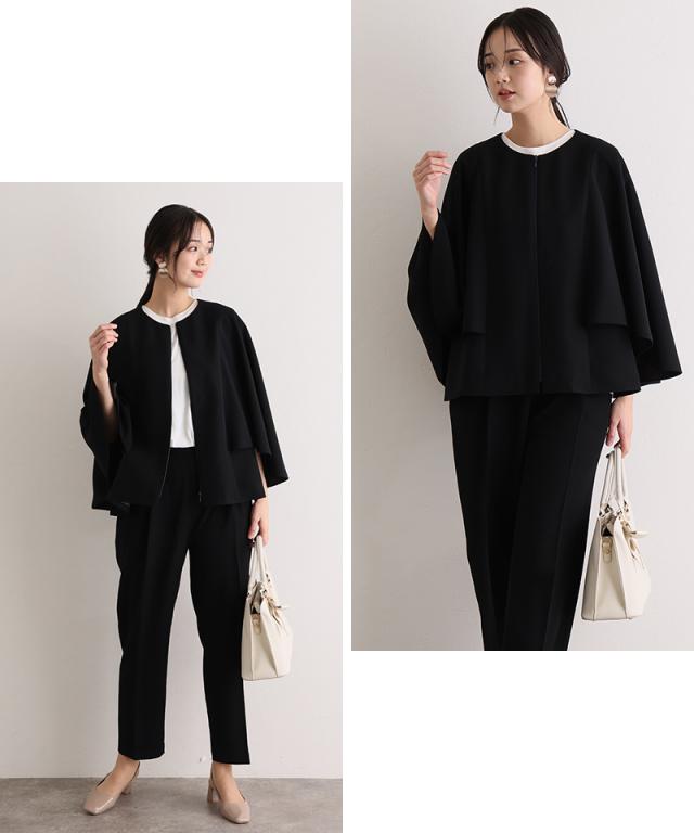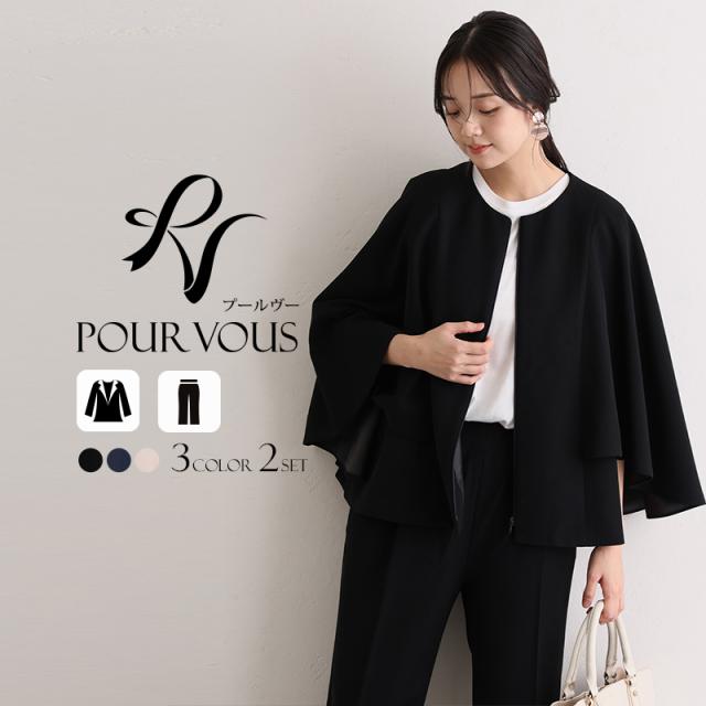 546261117 入学式 卒園式 卒業式 フォーマル ママ 大きいサイズ セレモニー 母 入園式 レディース スーツ ケープ風 ノーカラー 40代 50代 冬 秋 七五三 30代 お宮参り 母親 ママスーツ ビジネス