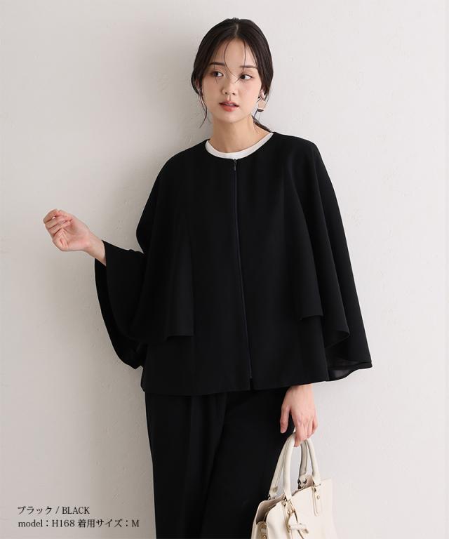 羽織るだけでこなれ感が出る、ゆったりとしたケープ風デザイン。