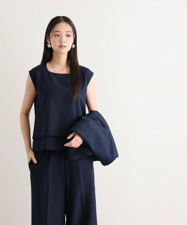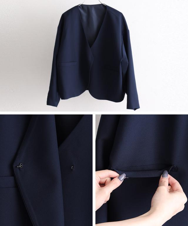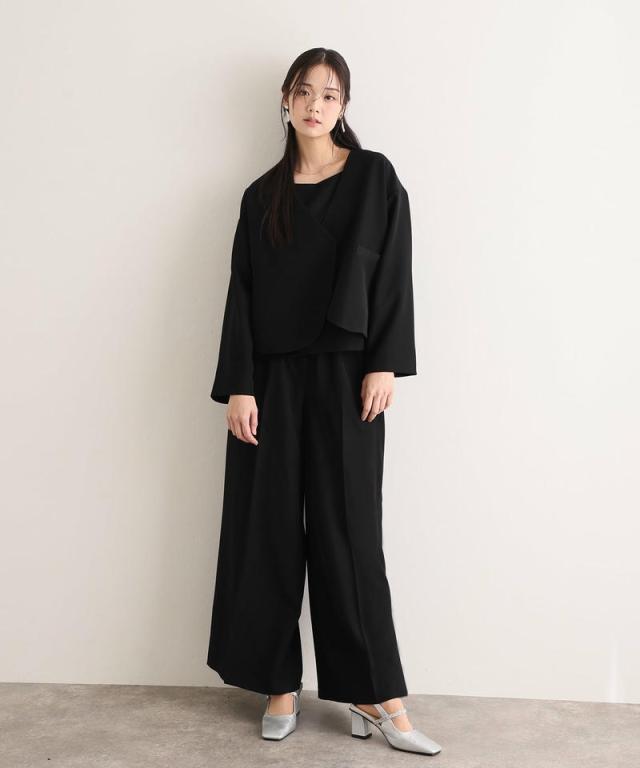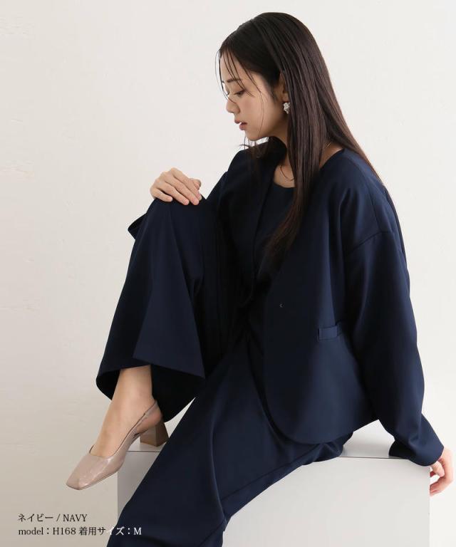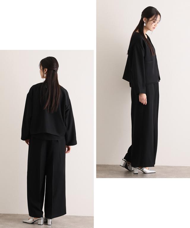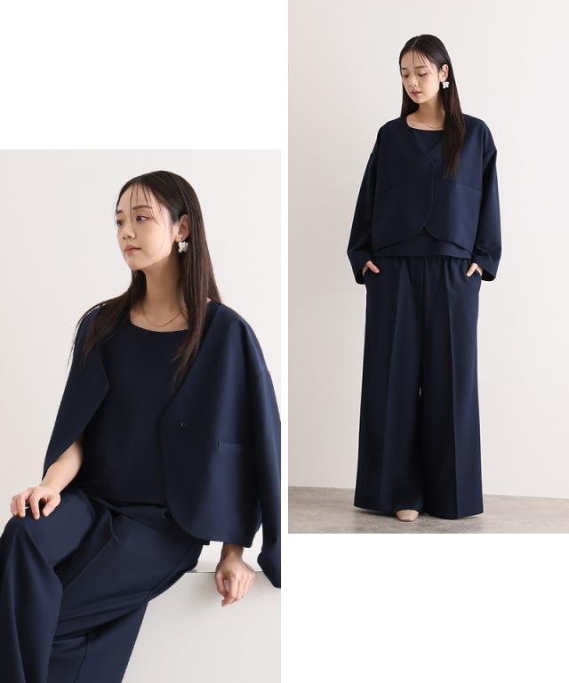 ミニマルなデザインが魅力のジャケット・トップス・パンツの3点セット。