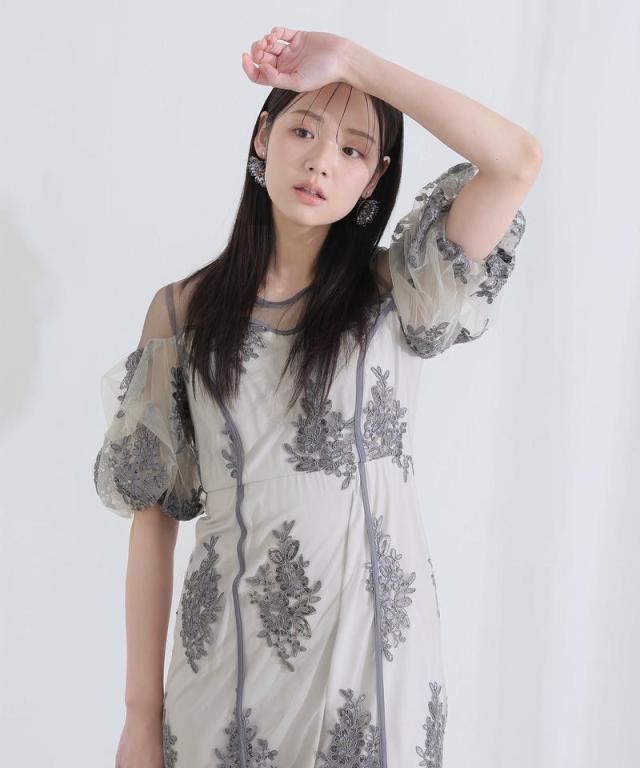 立体的な刺繍を施した、華やかで気品漂うドレス。