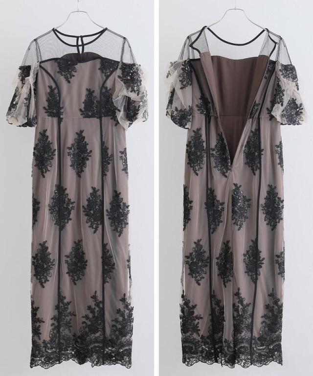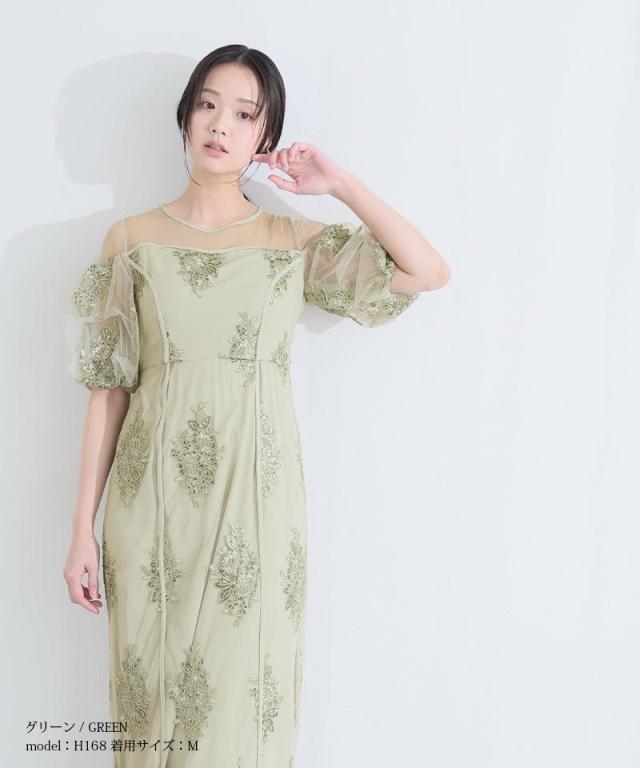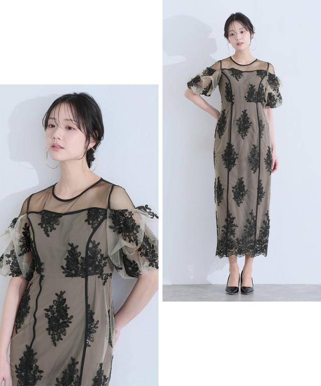 569251125 刺繍 シアー 結婚式 ワンピース パーティードレス お呼ばれ 大きいサイズ オケージョン ドレス 30代 40代 50代 フォーマル 体型カバー 母親 オケージョンドレス 小さいサイズ 上品