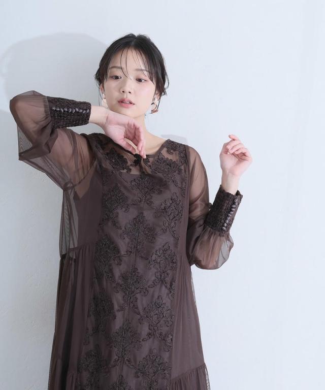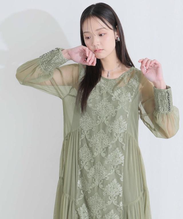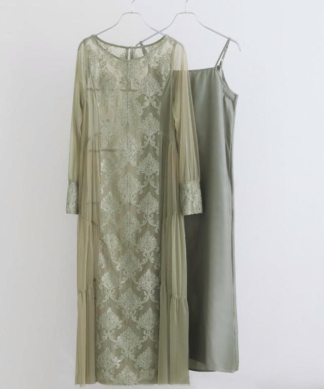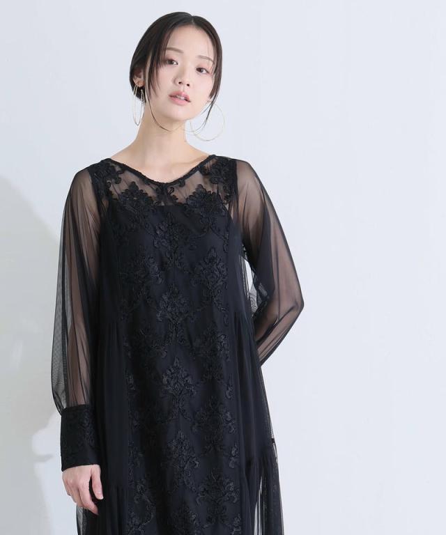 繊細な刺繍とチュールを重ねた、軽やかで奥行きのあるデザイン。