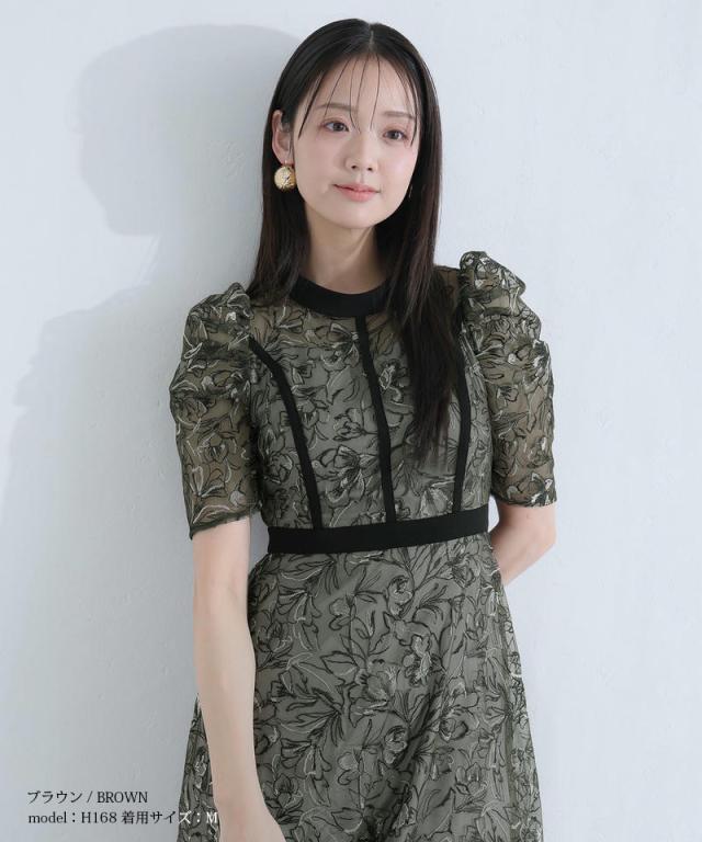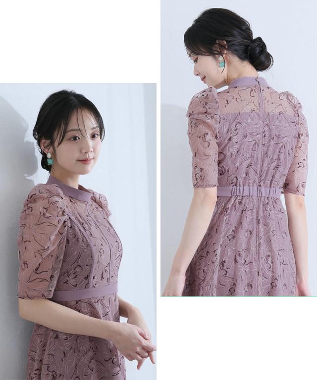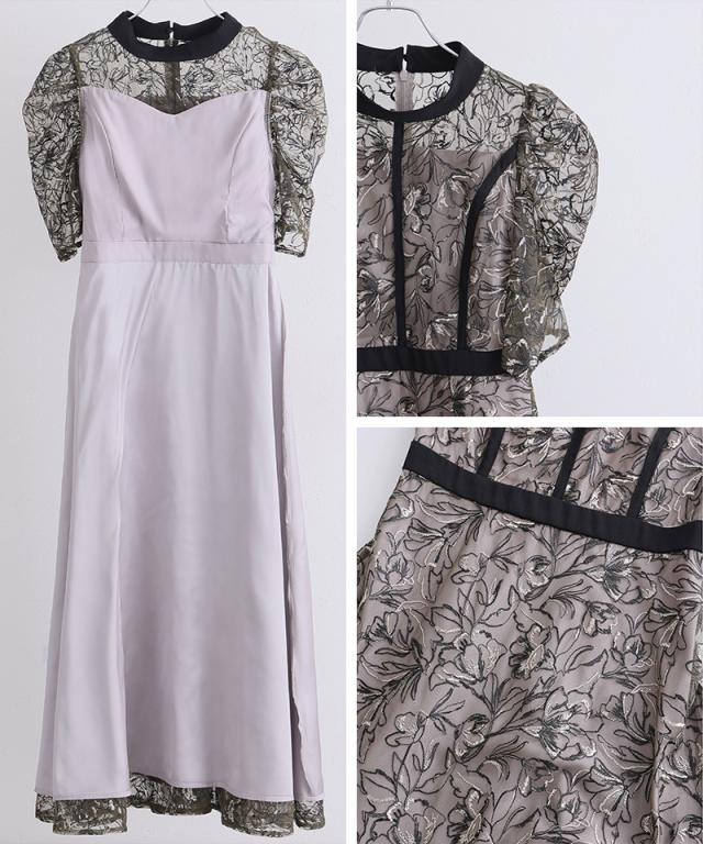 繊細な刺繍レースを贅沢に使用した、気品漂うパーティードレス。