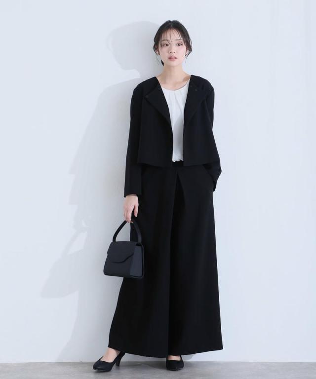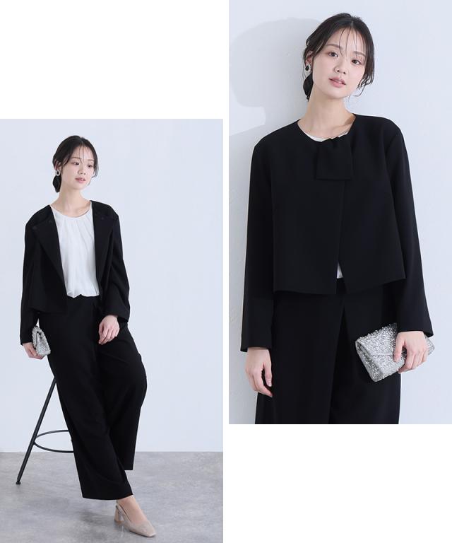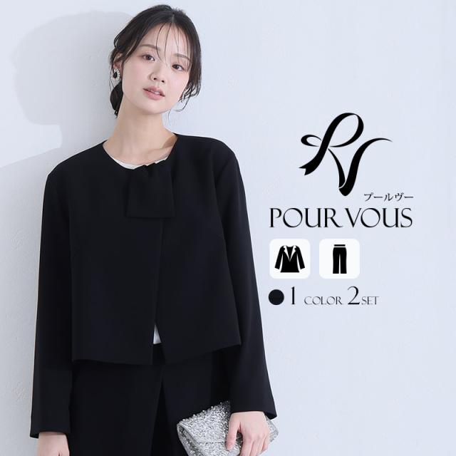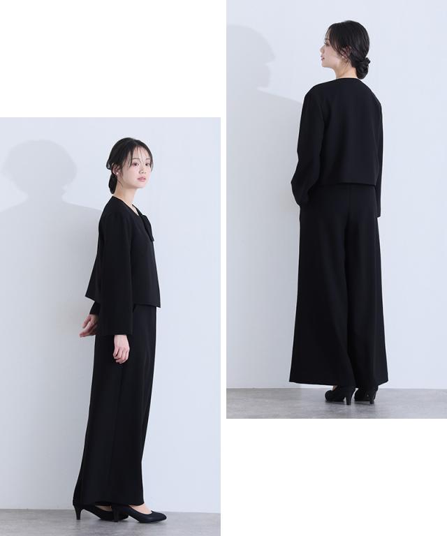 リボンデザイン ブラックフォーマル パンツスーツ【575251117】20代・30代・40代・50代・長袖・膝丈・セットアップ・スカート・パンツ・体型カバー・ジャケット・テーラード・スーツ・大きいサイズなど・即日発送・送料無料結婚式・婚活・披露宴・顔合わせ・二次会・同窓会・お呼ばれ・食事会・謝恩会・親族・七五三・お宮参り・冠婚葬祭・弔事・女子会・デート・入学式・卒業式・入園式・卒園式・ママ・マタニティー・セレモニー・セレブ・パーティー