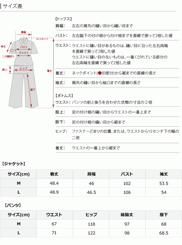 ジャケットとパンツの2点セットで、きちんと感のある装いが一着で完成。