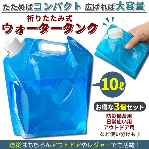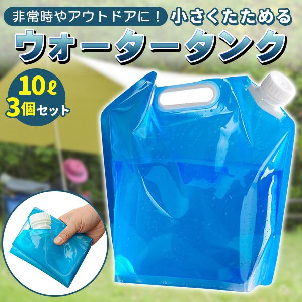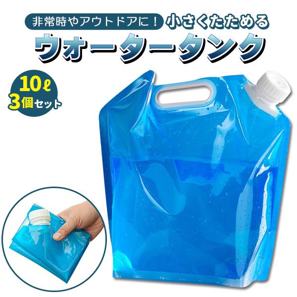 ウォータータンク 折りたたみ 10L 3個セット 防災タンク 水タンク 非常用 吸水袋 広口タイプ キャンプ アウトドア レジャー 持ち手付き 台風 地震 停電対策 防災グッズ 防災用品
