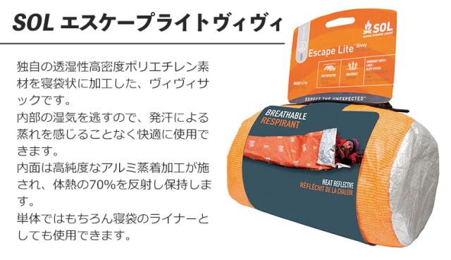 寝袋 【SOL エスケープ ライト ヴィヴィ(12517)】 sol ソル ライナー インナー インナーシーツ シュラフ 冬用 冬 暖かい 寒冷地 コンパクト 持ち運び 携帯 軽量 エマージェンシー 登山 アウトドア キャンプ ソロキャンプ 車中泊 災害 防災グッズ 防災用品 ウチヤマ