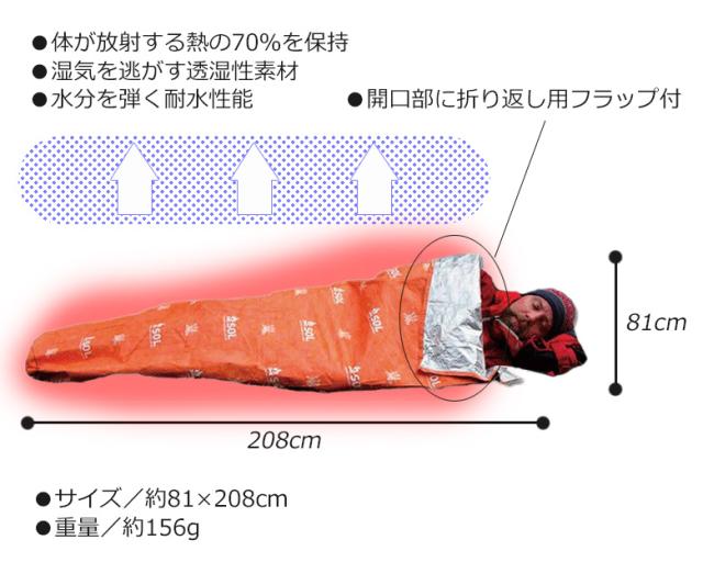 内面は高純度なアルミ蒸着加工が施され、体熱の70%を反射して保持します。