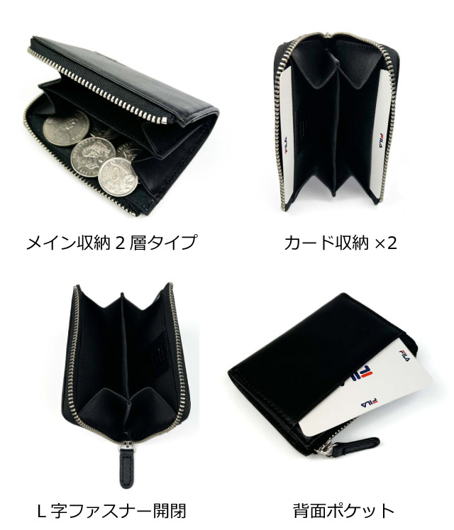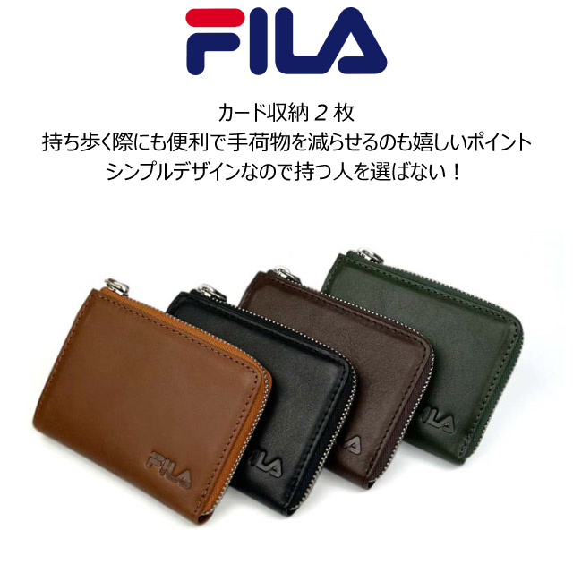 コインケース 革 FILA フィラ ベジタブルレザー L字ファスナー小銭入れ sfl604 小銭入れ メンズ ファスナー小銭入れ ファスナーコインケース 男性 コンパクト カード入れ カードも入る 使いやすい ブランド 人気 レザー 緑 緑の財布 グリーン 黒 茶 見やすい 大容量
