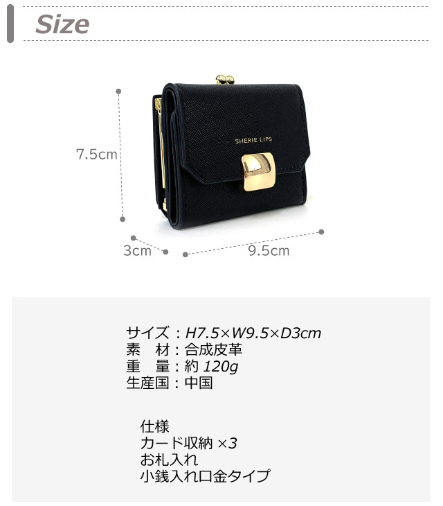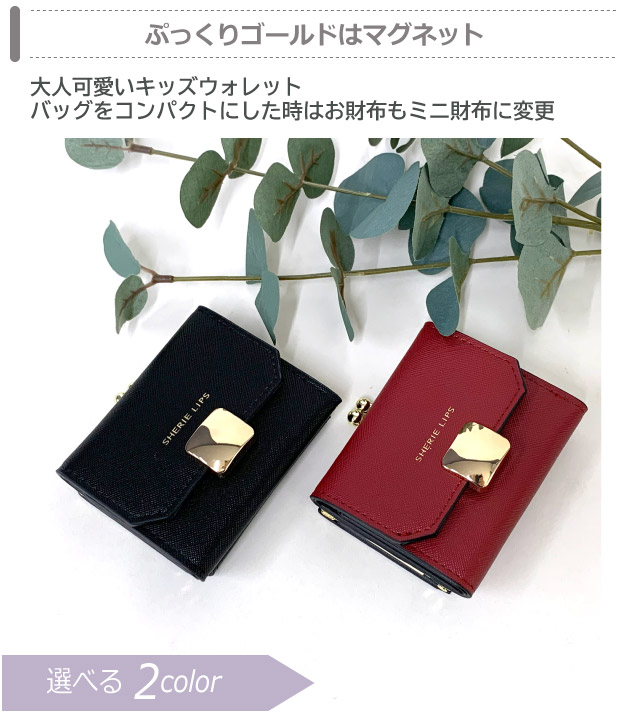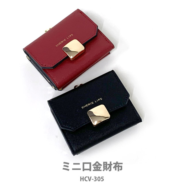 【ラッピング袋無料】ミニ財布 レディース Sherie Lips メルティーブローチ ミニ口金財布 hcv-305 キッズ 財布 小学生 女の子 がま口財布 がま口 中学生 高校生 修学旅行 三つ折り 小さい財布 かわいい コンパクト お 財布 さいふ 三つ折り財布 赤 黒 大人っぽい 3つ折り財布