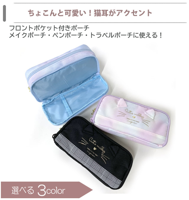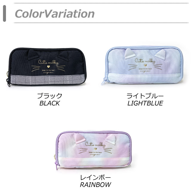 ペンケース 子供 Pirica nonno ミルキーキャット WFポーチ wbr-432 中学生 小物入れ おしゃれ 高校生 かわいい 筆箱 メイクポーチ 機能的 トラベルポーチ 大きめ 2ルーム ねこグッズ 小学生 高学年 水色 人気 黒 紫 旅行 ファスナーペンケース ネコ 猫 ファスナーポーチ