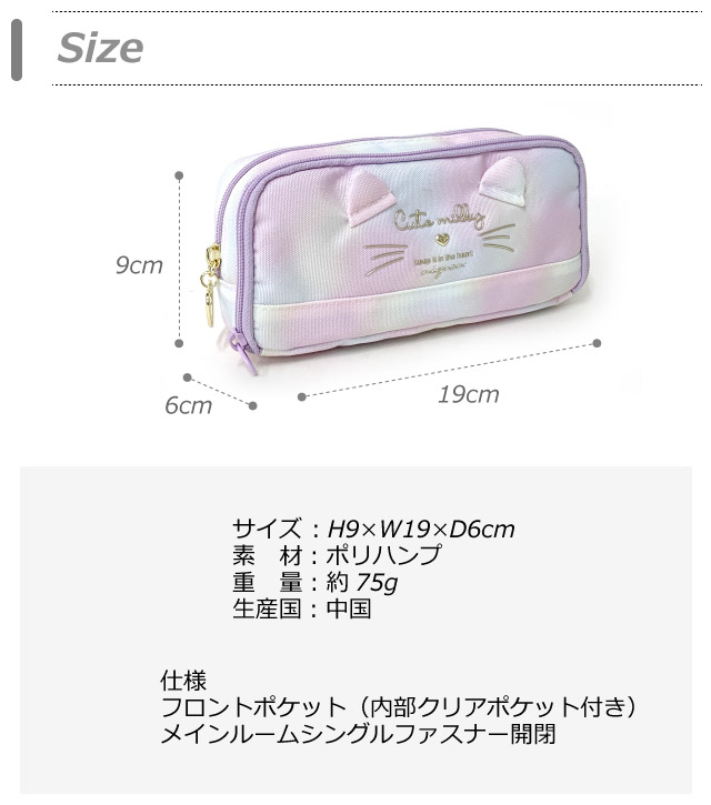 ![]() ![]() ![]() ![]() ![]() ・Pirica nonno ピリカノンノ ミルキーキャット ネコミミがかわいいファスナーポーチ。 2ルーム仕様で大容量。 韓国っぽデザインが人気です。 フロントルーム付きで整理整頓しやすくなっています。 メイクポーチ、ペンポーチ、トラベルポーチに幅広く活躍。 プレゼントとしてもおすすめです。
