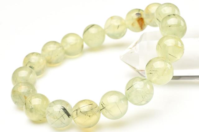 【1点物】エピドート・ライモナイト共生 プレナイト 11.5mm ブレスレット 金運・仕事運_U9030