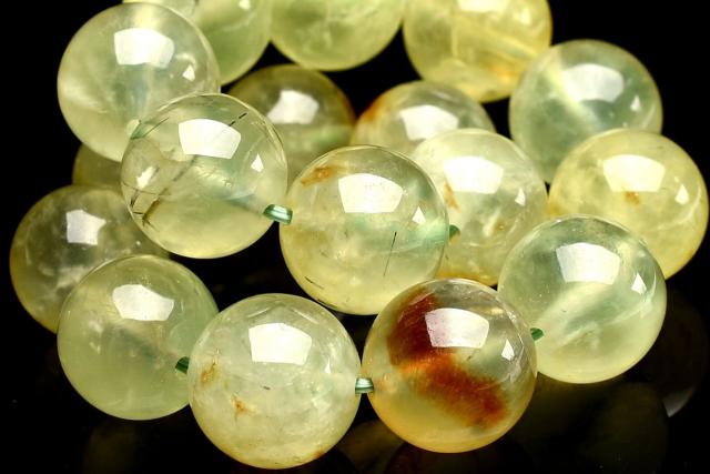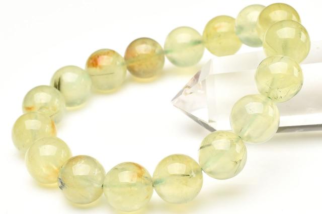 【1点物】エピドート・ライモナイト共生 プレナイト 12.5mm ブレスレット 金運・仕事運_U9034