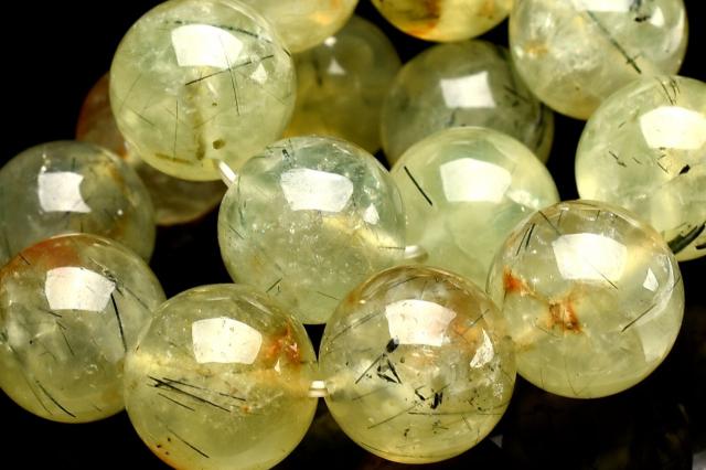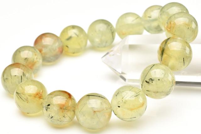 【1点物】エピドート・ライモナイト共生 プレナイト 14mm ブレスレット 金運・仕事運_U9036