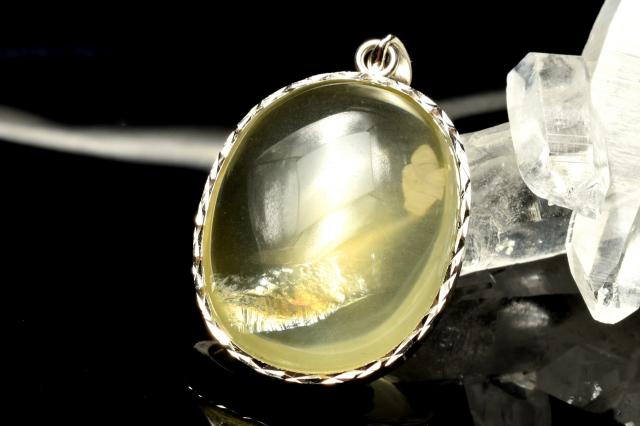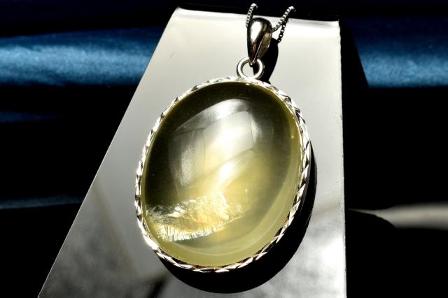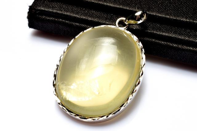【1点物】レモンカラー◇虹入り シトリン 27x21mm オーバル ペンダントトップ 金運・仕事運【ネコポス送料無料】_PC9597