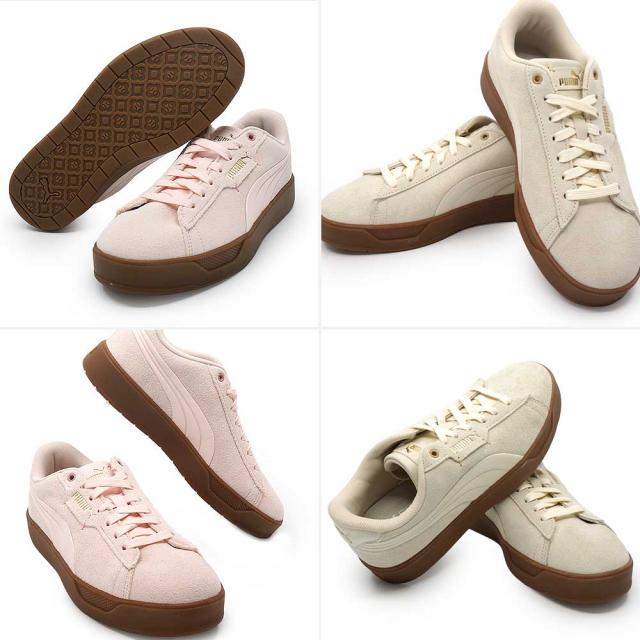 【26春夏新作】 プーマ スニーカー レディース 厚底 404523 スマッシュ ベル SD ローカット ガムソール 白 ピンクPUMA Smash Belle SD