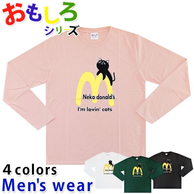 ★メール便送料無料★ おもしろ Tシャツ メンズ 長袖 12619408B ネコ ハンバーガー パロディ 猫 グッズ
