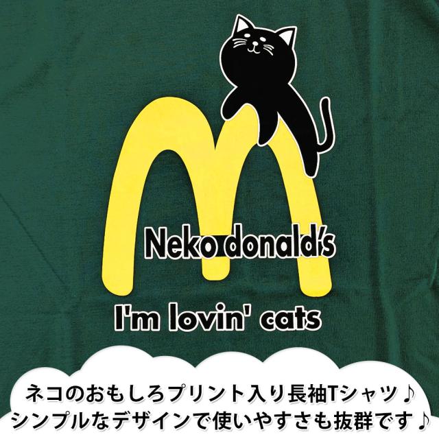 ネコのおもしろプリント入り長袖Tシャツ