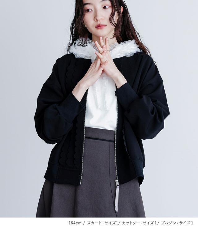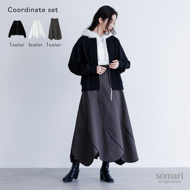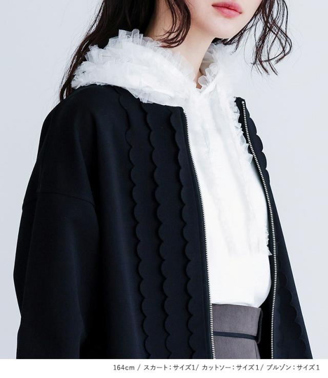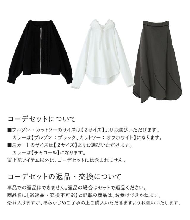 1,000円オフ4日0時迄 『スカラップブルゾン×フードカットソー×パイピングスカートコーデ3点SET』【メール便不可】【70】[3点コーデセット 2026 レディース ブルゾン 長袖 ダンボールニット カットソー フード付き チュール ロングスカート フレア]