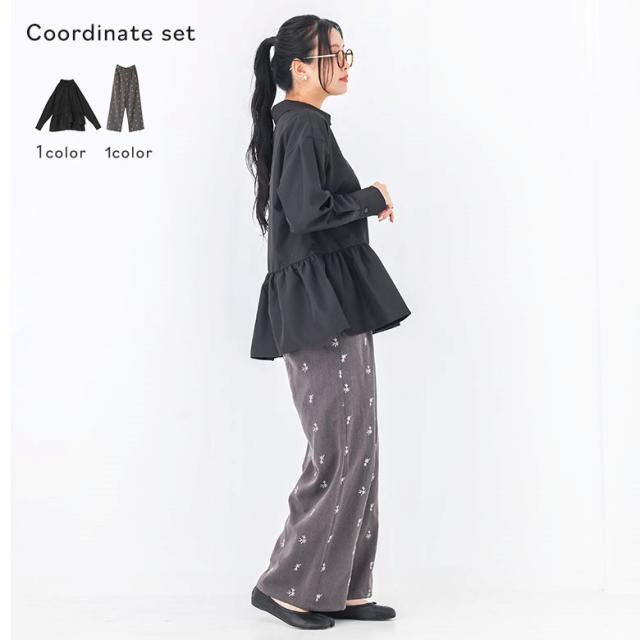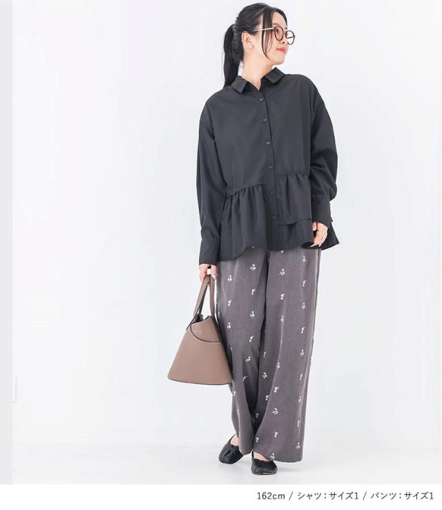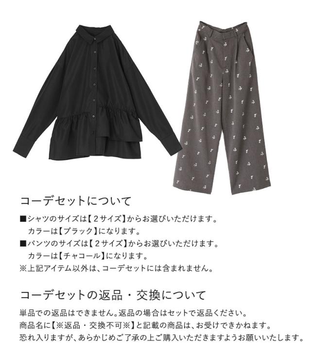 1,000円オフ4日0時迄 『アシンメトリーフリルシャツ×花柄刺繍スラックスコーデ2点SET』【メール便不可】【20】[2点コーデセット 2026 レディース シャツ 長袖 ブラウス フリル アシンメトリー スラックス ロングパンツ 花柄 刺繍]