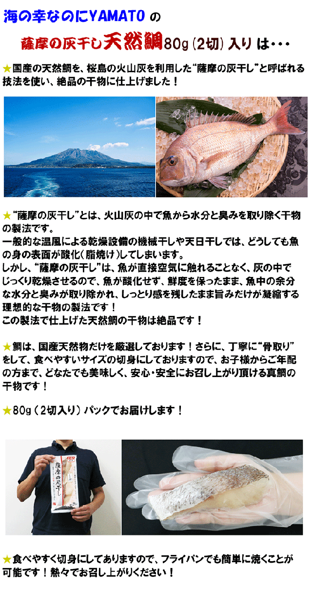 薩摩の灰干し 天然鯛 80g(2切入り) 骨取り タイ たい 干物 浜上水産 化学調味料無添加