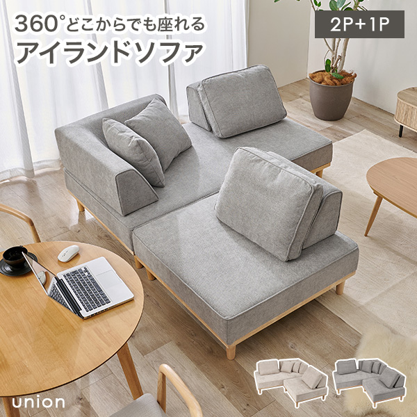 アイランドソファ カウチソファ 1P 2P おしゃれ 組み替え自由 ローソファ 北欧 天然木 クッション付き 完成品 組立不要 新生活 ユニオン ソファ ソファー リビング 背もたれ 2P ソファセット