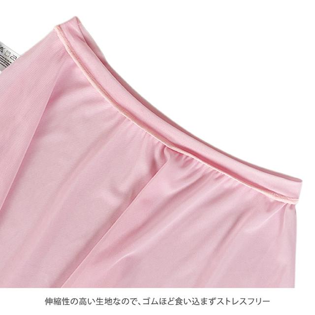 ウエスト部分は伸縮性のあるメッシュ生地が二重になっており、ゴムほど食い込まないので身体のラインがフラットで綺麗。